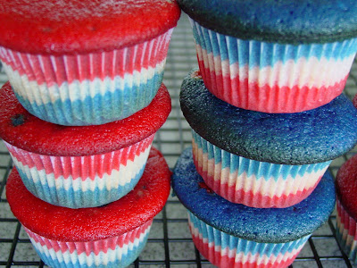 These are cute, fun and are very Americana. Kids love them, adults love them and they'd be a hit at your 4th of July celebration. Or make them in any color combo you like or just plain vanilla. They're very tasty either way. But I have to admit, the colors make them much more exciting!