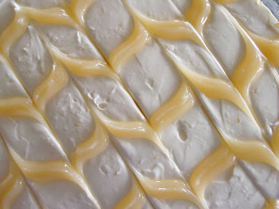 This cheesecake comes from the folks at Cook's Country (America's Test Kitchen) and they don't usually make their recipes available to the public unless you subscribe to their website. So I was glad to find it on Mel's Kitchen Cafe-- she had me at "no bake" :-) This is a no bake cheesecake but you still have to turn the oven on set the graham cracker crust. The filling is loaded with cream cheese, heavy cream and lemon curd, all set up by a little envelope of gelatin. You do have to chill it for a few hours, hence the word "icebox" in the title, but it'll be worth it. You can make it at night like I did and it will be ready for you the next day.